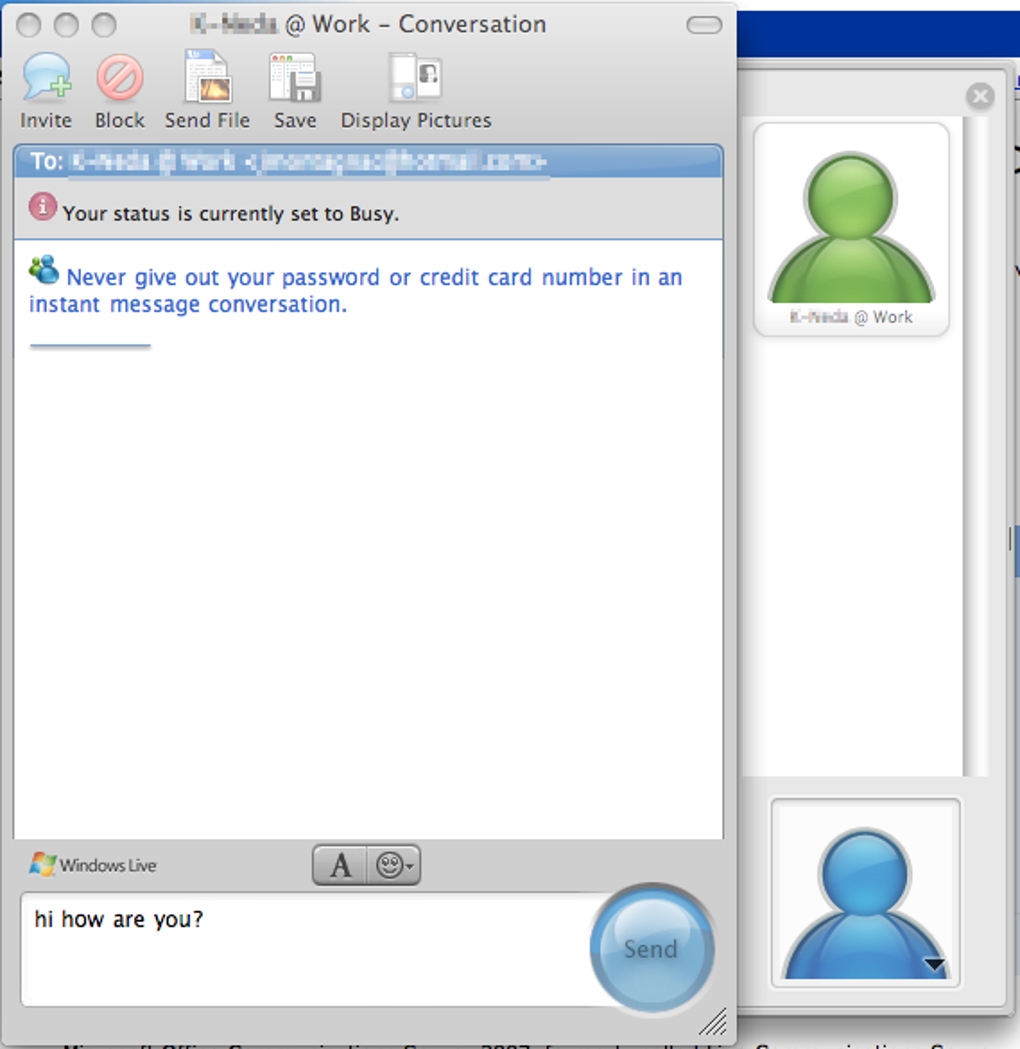 • Importante Messenger per Mac 7.0.3 non funziona con Live Communications Server 2005. Se la propria organizzazione utilizza Live Communications Server 2005, è necessario utilizzare Messenger per Mac versione 6.0.
