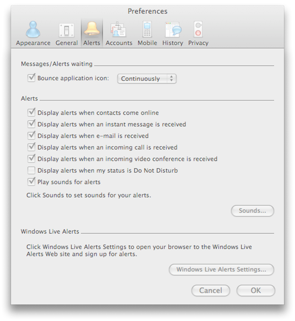 Importante Messenger per Mac 7.0.3 non funziona con Live Communications Server 2005. Se la propria organizzazione utilizza Live Communications Server 2005, è necessario utilizzare Messenger per Mac versione 6.0.